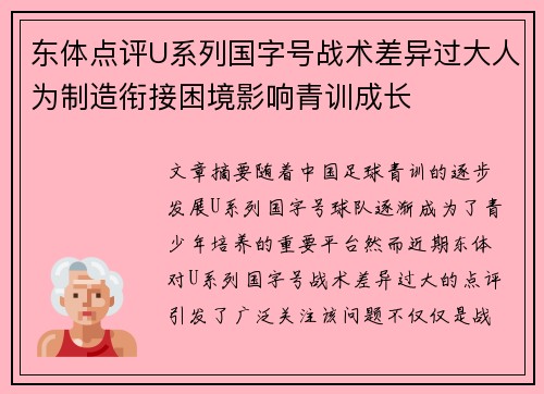 本文将对荷兰足球教练阿尔弗雷德·斯洛特(Alfred Schreuder)回顾自己青年时代执教经历进行详细探讨,重点分析他在执教风格和理念上与德国教练尤尔根·克洛普(Jürgen Klopp)的差异。斯洛特在青年时期的执教风格受到个人经历的深刻影响,与克洛普的高强度、攻势足球风格有着显著的不同。本文将从四个方面对这一差异进行详细分析:第一,斯洛特的战术理念和训练方法;第二,球员管理和人际沟通;第三...